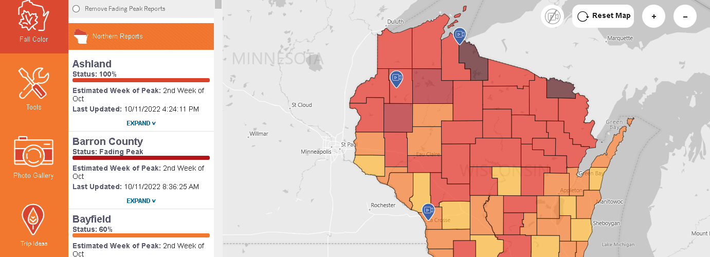 The 2022 Wisconsin Fall Color Report is the most comprehensive in the state. Get the best locations for viewing fall foliage in the Northwoods.